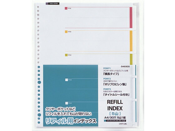 【送料290円 2900円以上で送料無料】【平日即日発送】リヒト/リフィルインデックス A4タテ 5山 30穴/G49300 価格: 175円 レビュー評価:4.0 レビュー数:1 ●穴数:30(2、4)穴●材質:再生ポリプロピレン50%●仕様:5山●サイズ:A4タテ●寸法:縦297×横230(+山の高さ10)mm●注文単位:1組●グリーン購入法適合●GPNエコ商品ねっと掲載【検索用キーワード】カラーインデックス LIHIT A4ファイル インデックスカード 仕切り G49300クリヤーポケットなど、リフィルと組み合わせても山が隠れない「横長タイプ」 Supported by 楽天ウェブサービス |